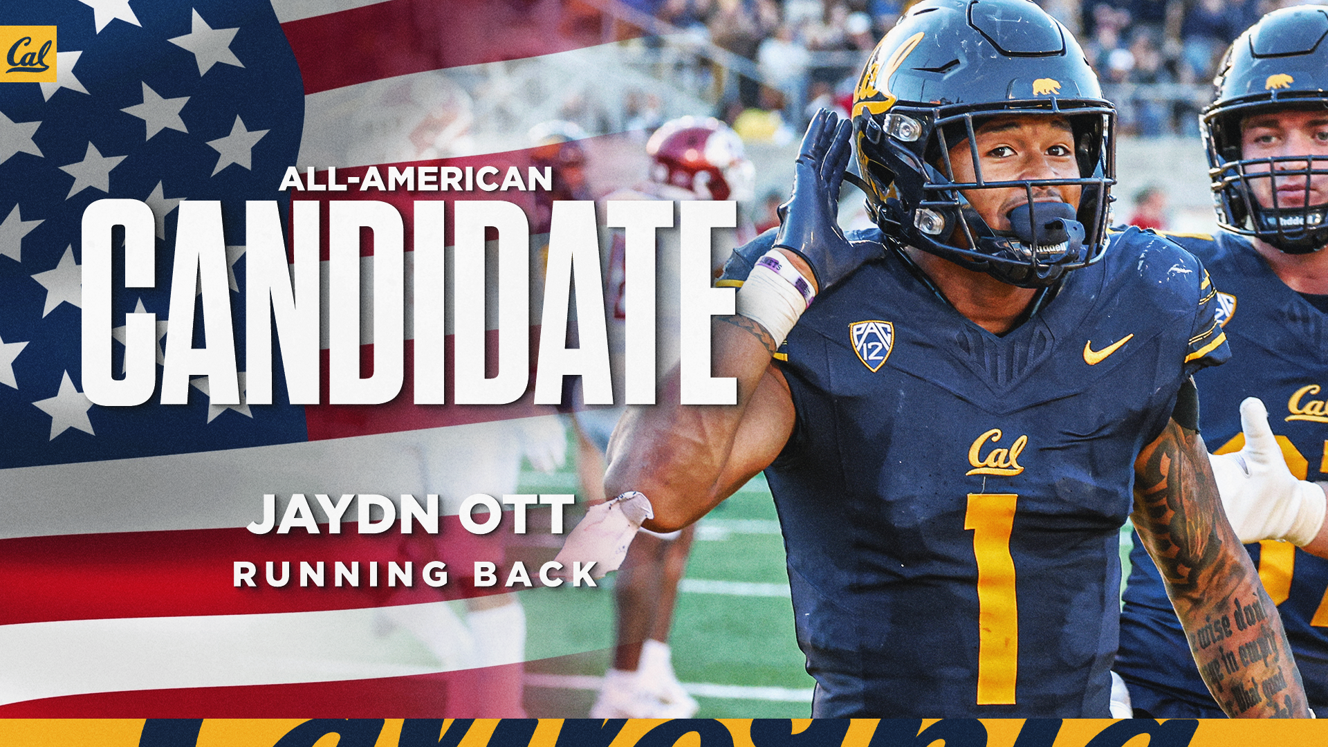 at UCLA (W, 33-7) – 21 rushes, 80 yards, 14 long; 1 reception, 4 yards, 4 long; 1 kick return, 100 yards, 100TD long, 1 TD; 192 all-purpose yards; 92 yards from scrimmage ... named Pac-12 Special Teams Player of the Week for the first time in his career and was honored with weekly recognition from the conference on the fourth occasion ... returned a kickoff 100 yards for a touchdown in his lone career kickoff return after UCLA had briefly taken a 7-6 lead that lasted only the 12 seconds for Ott to get from Cal's end zone into UCLA's ... the 100-yard kickoff returned tied for the third-longest in Cal history, was the fifth kickoff return of 100 or more yards, the first kickoff return for a touchdown since Nikko Remigio had one for 99 yards in a victory over Sacramento State in 2021 and the first kickoff return for a touchdown of 100 or more yards since Trevor Davis returned two kickoffs for touchdowns including one for 100 yards in a win at Washington State in 2014 ... the 100-yard kickoff return was one of five by FBS players on November 25 and is one of 10 during the 2023 season