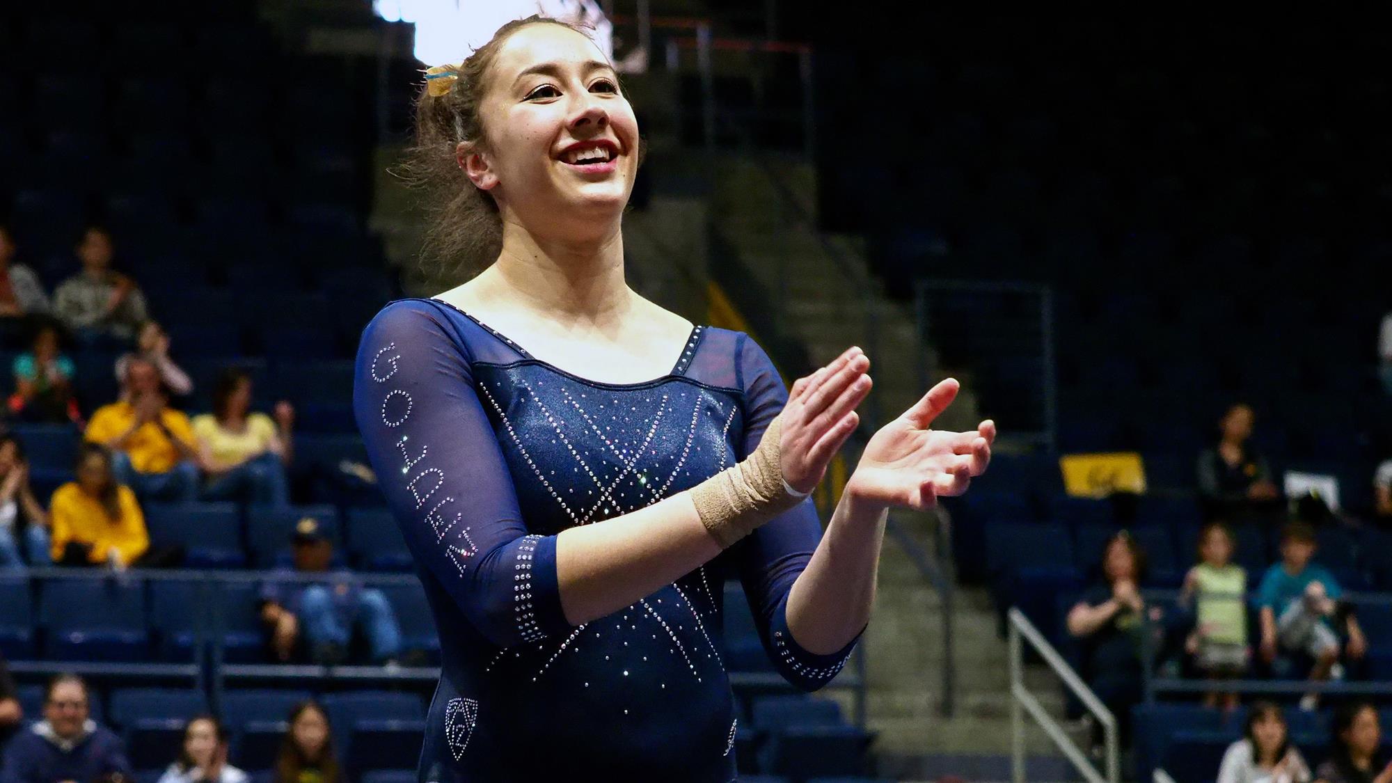 Competitor in 11 vault lineups, two beam lineups and two floor lineups…One event title and two top-three finishes as a freshman…In only the second competitive appearance on floor of her career, posted a 9.625 in the NCAA Championship semifinal (4/15); Also competed on vault, earning a 9.8375…Went 9.75 on vault in her only event at the NCAA Tuscaloosa Regional (4/2)…Earned a 9.025 in her collegiate debut on floor in the Cal quad meet (3/4)…Claimed her first career event title with a career-high 9.90 vs. Arizona (2/8)…Vault debut came at the Oklahoma tri meet (1/15), turning in a strong 9.825…Made her Cal debut on beam at the NorCal Classic (1/10), earning a 9.725 on beam
