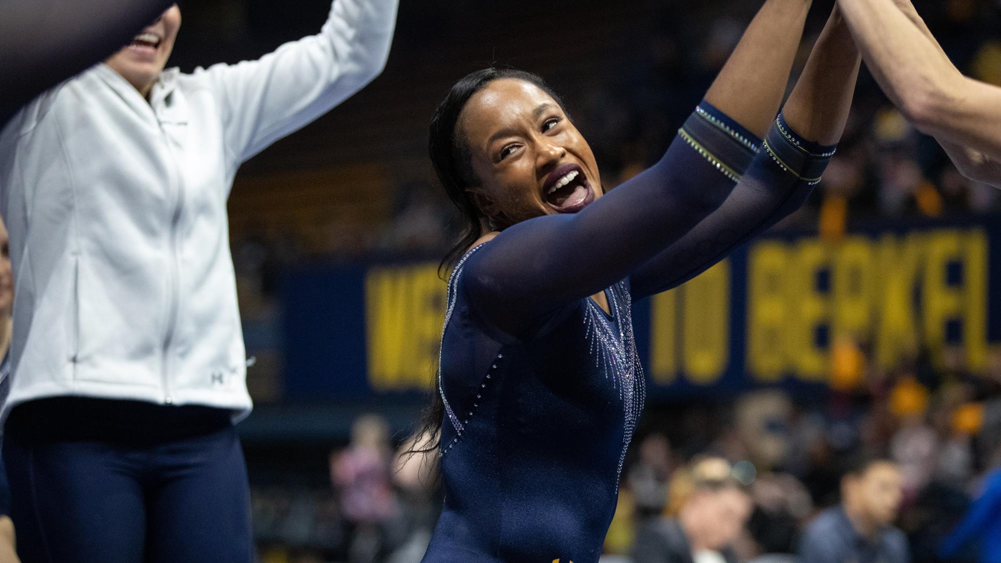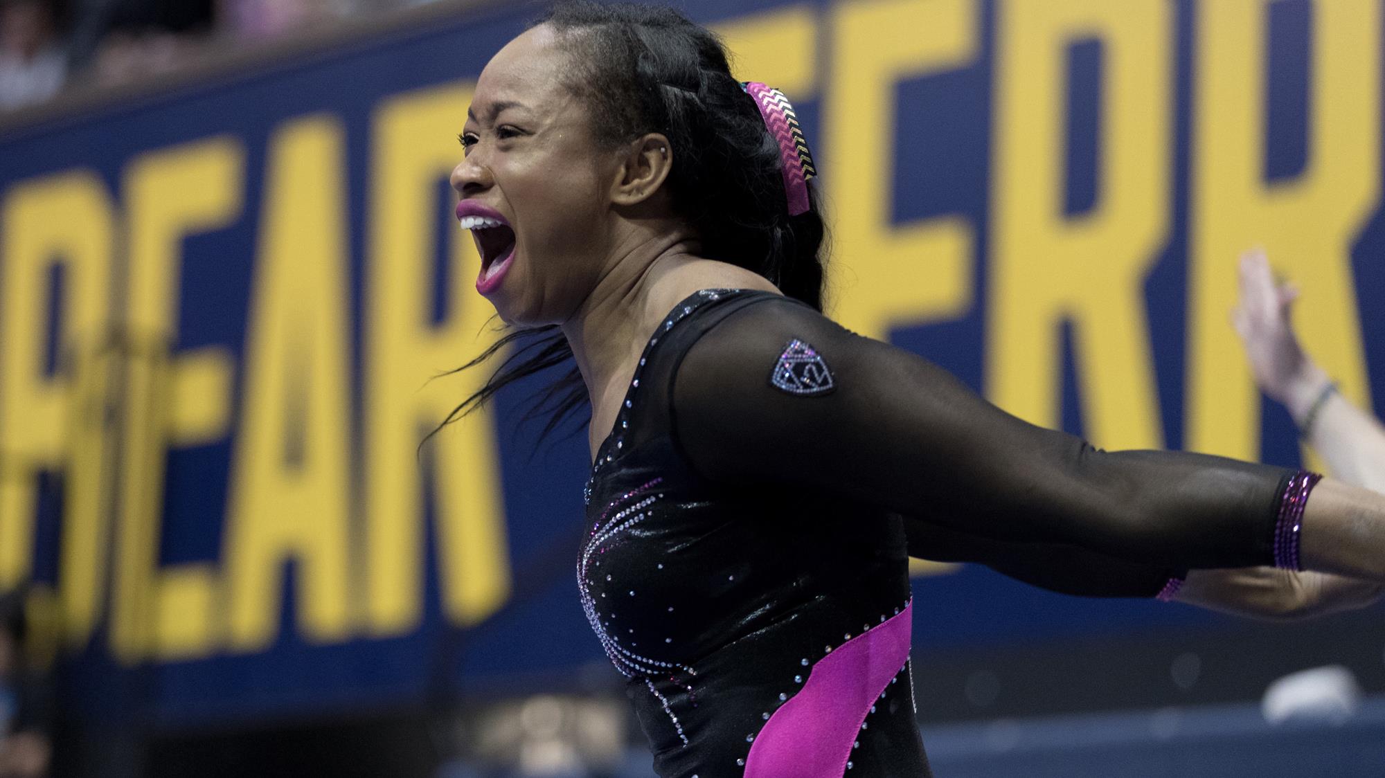 NACGC/W Regular-Season All-American first team on floor...Picked up her second consecutive NACGC/W West Region Gymnast of the Year honor…All-Pac-12 First Team on both vault and floor…Named Pac-12 Gymnast of the Week twice (Feb. 2 & Feb. 16) as a sophomore…Earned her first Pac-12 Specialist of the Week honor, becoming one of only two gymnasts in the conference to earn each of the weekly awards (Freshman, Gymnast, Specialist) at least once in her career…Claimed 17 event titles with 26 total top-three finishes as a sophomore…Vault, bars and floor competitor in 12 of 13 meets, and competed in the all-around in five meets…Missed the NCAA Championships to compete at the Rio Olympic Test Event, where she became the first Jamaican gymnast to qualify for the Olympics…9.85s on bars and floor and 9.65 on vault at the NCAA Tuscaloosa Regional (4/2)…Became Cal’s first individual event champion at the Pac-12 Championships (3/19) since 2004, winning floor with a 9.925…Won bars and floor at the UC Davis tri meet (3/11) with season-highs on the event, including a new 9.925 on bars…Won vault at Oregon State (2/20)…Swept every title, including all-around, at Arizona State (2/15), including a career-best 9.925 on beam…Added another three titles -- bars, beam and floor -- against Arizona (2/8)…Picked up vault, floor and all-around titles in Cal’s historic upset of UCLA (2/1) -- the Bears’ first win over the Bruins since 1985…Floor champion at the Stanford tri meet (1/24) with a season-high 9.925; Also her first all-around competition of the season…Claimed the NorCal Classic (1/11) vault title with a 9.85