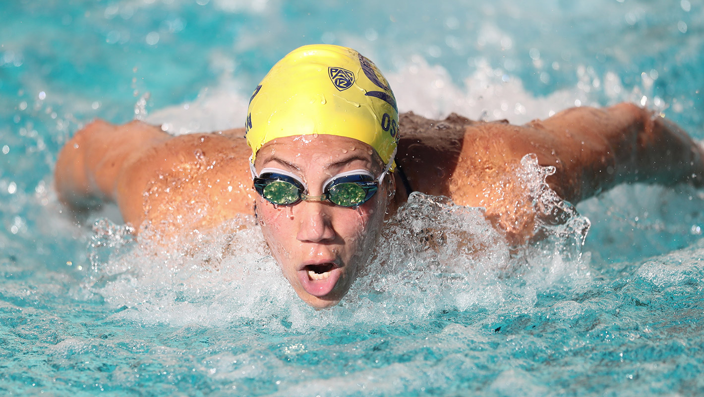 • At the Pac-12 meet, took fourth in the 50 free (22.11), won the B final of the 100 fly (52.36) and was 10th in the 100 free (48.38)